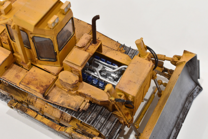 Провисание траков на гусенице (верхняя и нижняя части идут одними цельными деталями) делал так: закреплял деталь на подложке грунтозацепами вниз, подкладывал зубочистки там где должен быть провис и фиксировал прессшайбами, затем грел обычным феном.