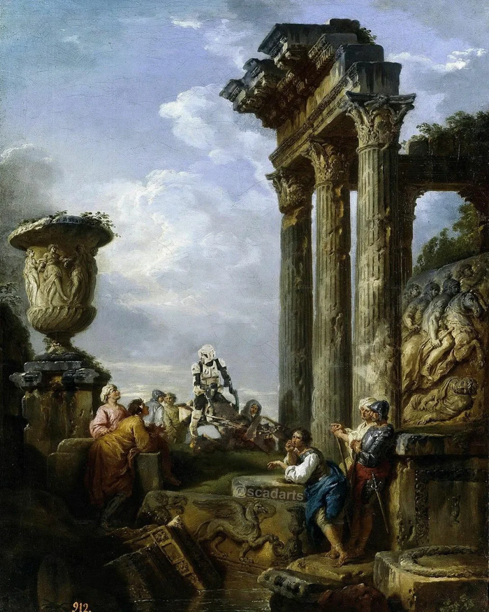 В инстаграме Scadarts есть целая серия артов, где он примеряет на персонажей далекой-далекой галактики наши земные образы (и наряды) прошлых веков