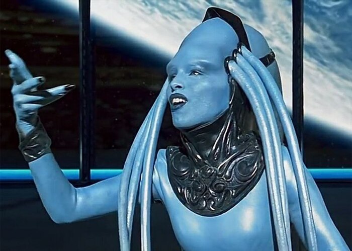 А образ Карди Би в синем кастомном платье от Gaurav Gupta напомнил Диву Плавалагуну из 5ого элемента, - есть в нём космические ноты.