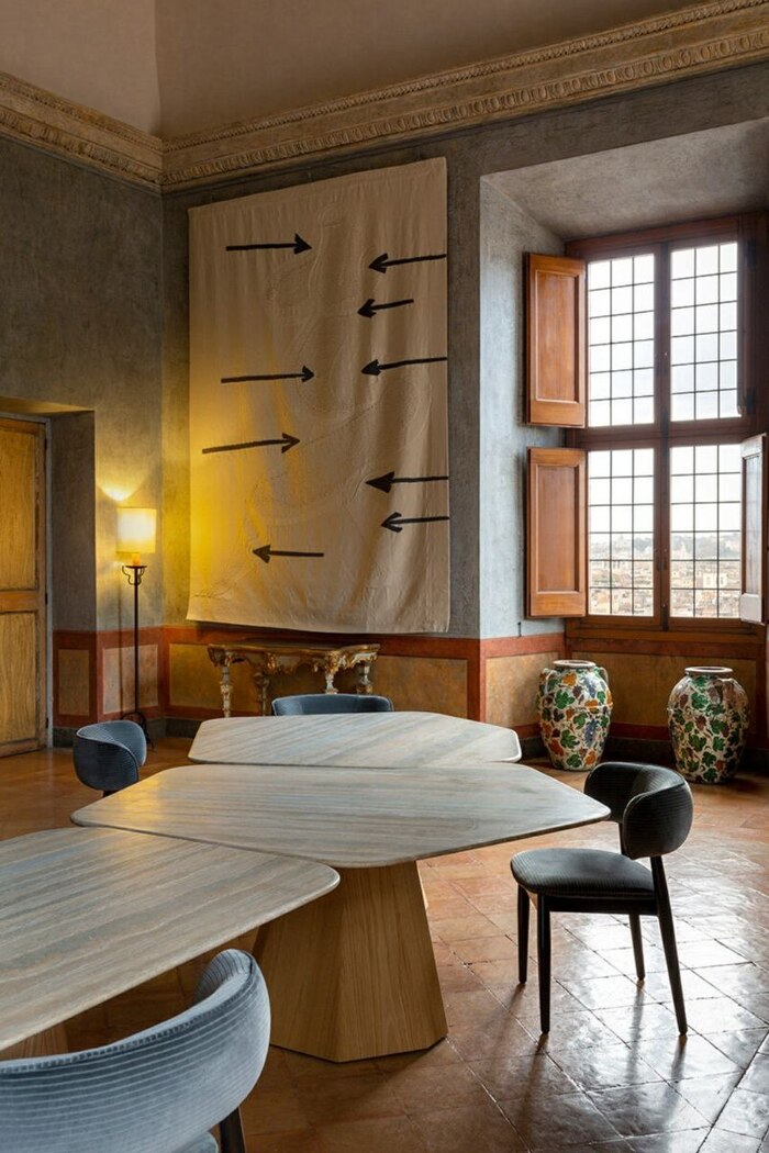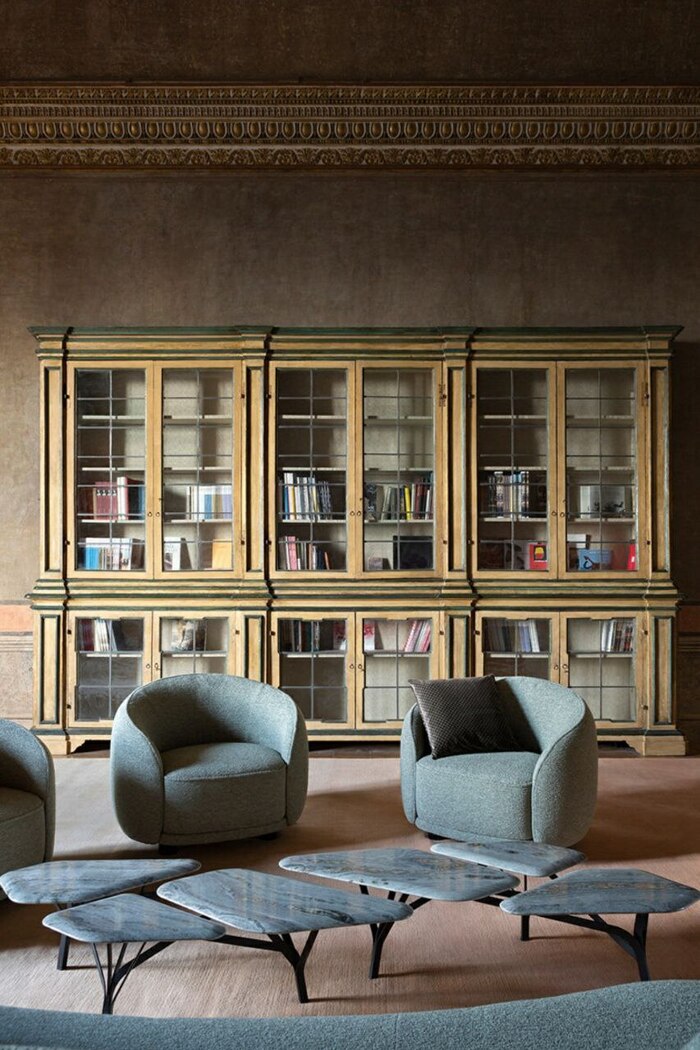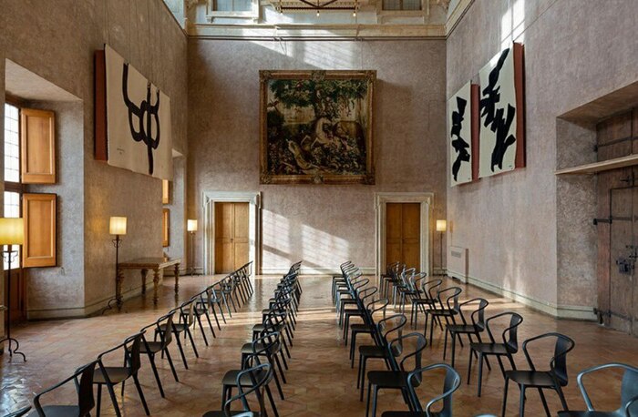 Одна из вилл Медичи, расположенная на холме Пинчо в Риме, как и другие виллы знаменитого семейства поклонников искусства, была построена в соответсвии со стилем эпохи, а именно, эпохи возрождения. В этом году воплотился в жизнь совместный интерьерный проект Французской Академии Искусств, расположенной на вилле, и Fendi Casa, интерьерной линией известного модного дома Fendi. К дизайну интерьеров виллы приложили руку Ким Джонс и Сильвия Вентурини Фенди, креативные директора бренда. Из эпохи возрождения "внутренности" виллы трансформировали в эклектичный контемпорари, сохранив при этом дух виллы, - если не учитывать свеженькие, еще не просиженные диваны, то вышло очень даже гармонично.
