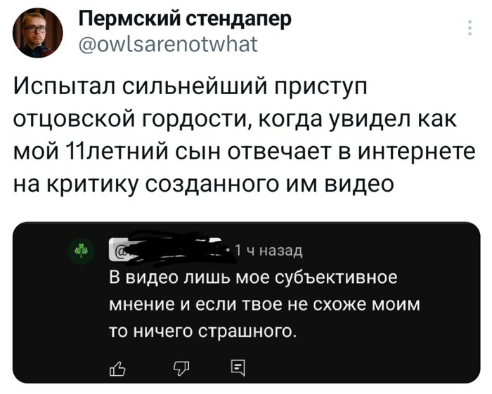 Пример: ребёнок дома сказал что-то в шутку, а родители отреагировали строго – он учится «сначала подумать, потом говорить».