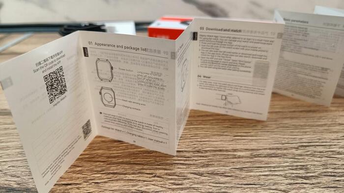 Провод питания с 2 контактами и магнитной основой. Зарядка смарт-часов происходит за 1.5-2 часа до 100%. Примагничивается только в одном положении, надежно удерживается во время заряда, но лучше следить при подключении к источнику питания, чтобы на контактах не было посторонних металлических предметов. В инструкции потребуется QR код для загрузки фирменного приложения. Сама инструкция на английском и китайском языках.