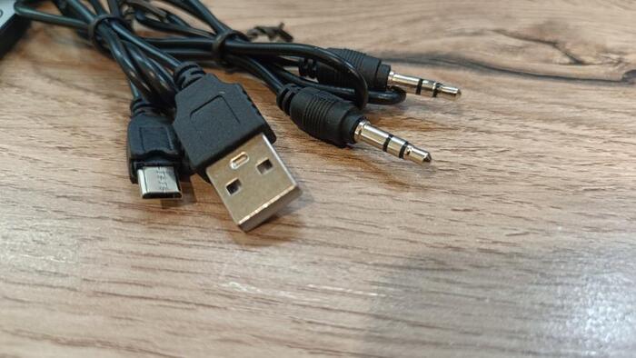 Питающий провод длиной около 60 см с разъёмом USB type-c. Так как наушники не поддерживают протоколов быстрой зарядки и высоких токов, то особых претензии к кабелю нет. AUX кабель с обоюдным mini jack 3.5 имеет длину около метра и резиновую оболочку. Но как по мне, так провод коротковат и при использовании проводного подключения его возможно придётся заменить. На холоде не дубеет, а резиновые кембрики на разъёмах препятствует повреждению.