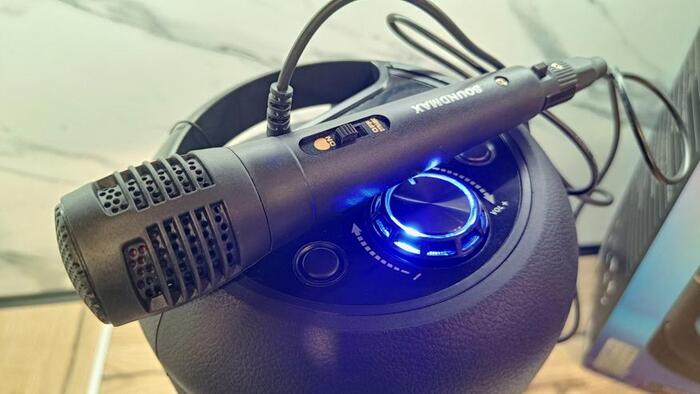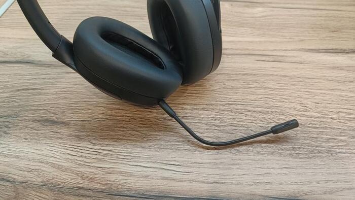 В комплекте присутствует выносной микрофон подключающийся к наушникам через разъём mini jack. Микрофон размещается в пластиковом капсуле и удерживается металлической гибкой арматурой. Благодаря металлической оплётке получается настроить микрофон под определенного пользователя.