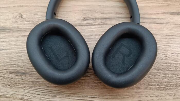 Амбушюры выполнены из искусственной кожи с довольно большими чашами, что позволяет полностью охватить ухо и создать дополнительную пассивную шумоизоляцию. В принципе все эти элементы съёмные и могут обслуживаться или заменяться новыми. Внутри чаши на акустической ткани выведены направленности «L» и «R». Хотя в принципе чаши наушников имеют небольшой наклон и в случае использования, это будет чувствоваться. Тем более стоит учитывать, что всё управление вынесено на правую сторону.