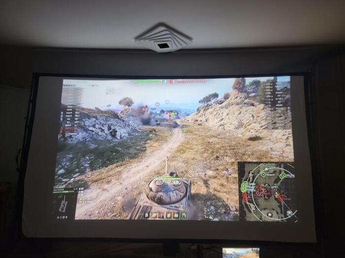 Домашний кинотеатр с охрененно большим экраном 150-дюймов.