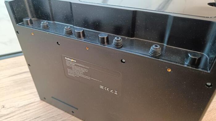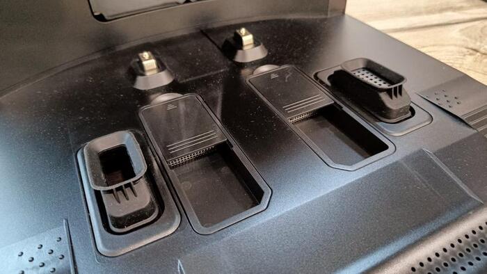 Аккумуляторная батарея сделана в виде съемного модуля: внутри две ячейки (7.2 Вольта) на 2200 мАч. Заряжать можно как в кредле-подставке, так и от USB-C, что весьма удобно. Например, можно будет подзаряжать в походе от павербанка. Можно подключить тангенту или гарнитуру, так как разъем стандартный (двойной, как в баофенге).