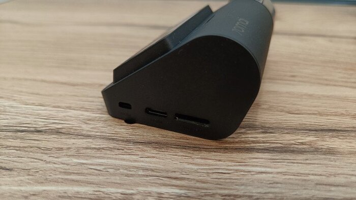 На боковых гранях разъемы и отверстие микрофона. Светодиодный индикатор выведен на головку камеры.