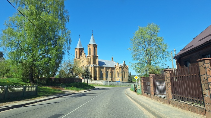 Вот и этот неоготический костёл Рождества Девы Марии, построенный в начале прошлого века, из той же серии: посреди небольшой полусельской застройки вынырнул из-за поворота эдаким красавцем)