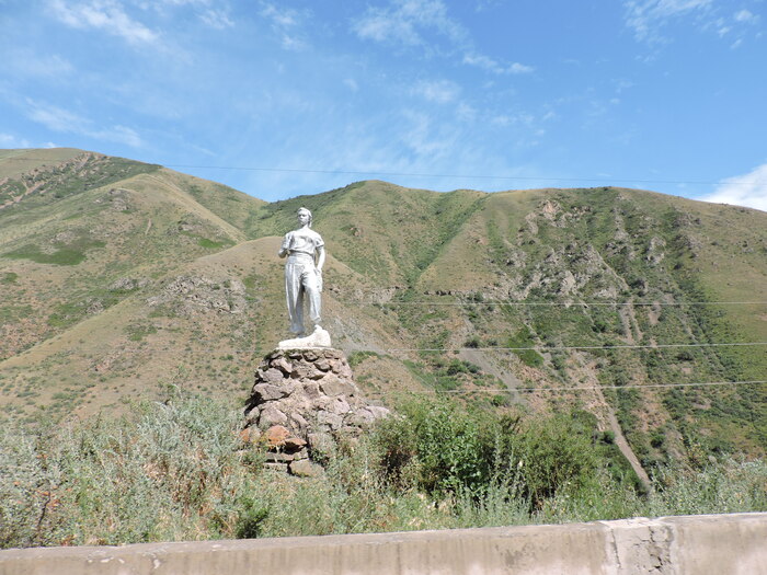 Когда возвращаешься из Балыкчы (ближайшая к столице точка Иссык-Куля) в Бишкек, справа по ходу мелькают всякие скульптуры: