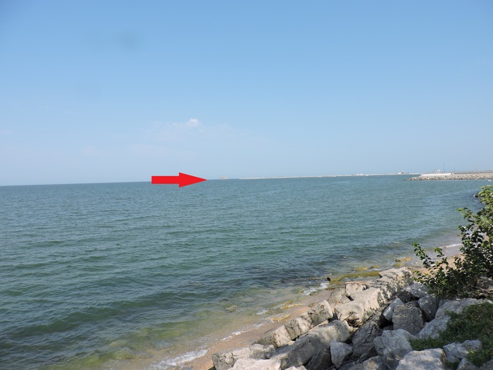 Грандиозное сооружение примерно в трёх километрах от берега. Оно было построено в 1939 году для испытания морского оружия.