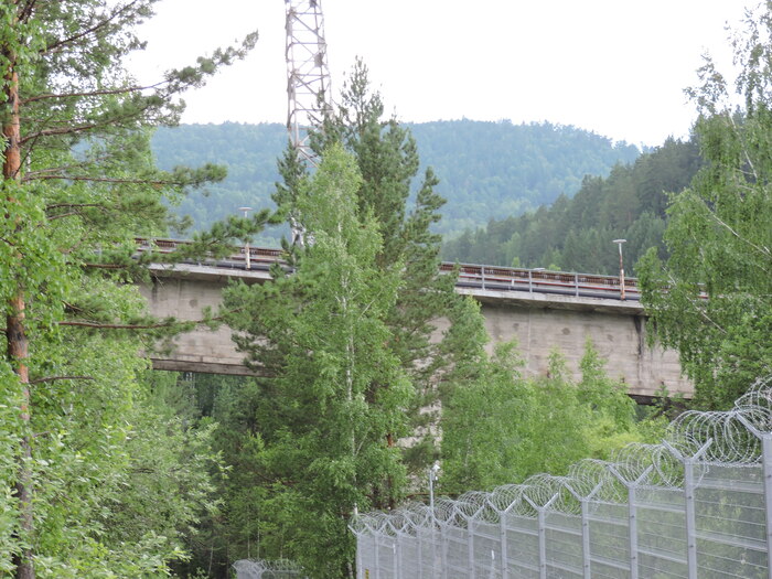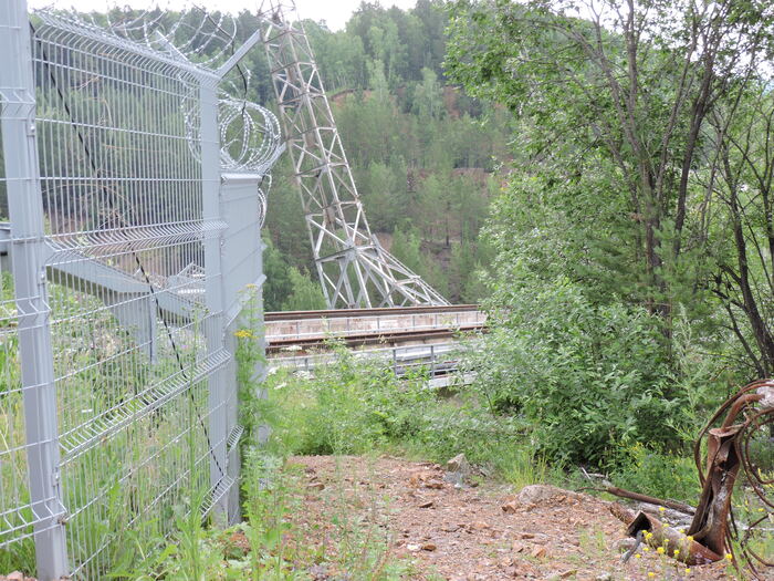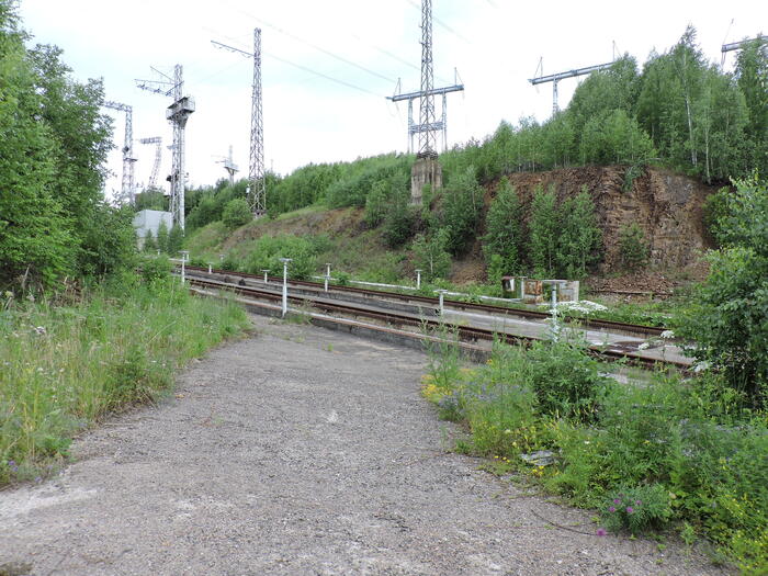 По понятным причинам фотографии этого монструозного транспортного сооружения делать затруднительно) Но немножко "ковша" на круге, рельсов и эстакады я всё-таки снял. Длинную его часть.