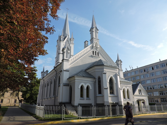 Первые лютеране появились в Гродно в конце XVIII века. Сначала они обходились приспособленной под кирху небольшой таверной, а в 1800 году на её месте начали возводить полноценную каменную церковь. Этим делом они занимались долго, больше сорока лет, но результат в стиле неоготики вышел, согласитесь, очень достойный))