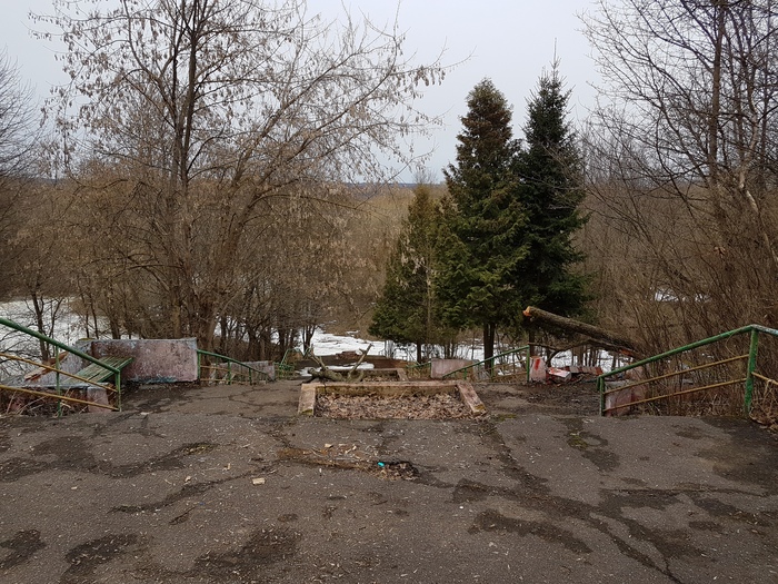 Парадная лестница от дома к реке Суходрев тоже не впечатляет теперь своей монументальностью, хотя ходить по ней ещё безопасно.