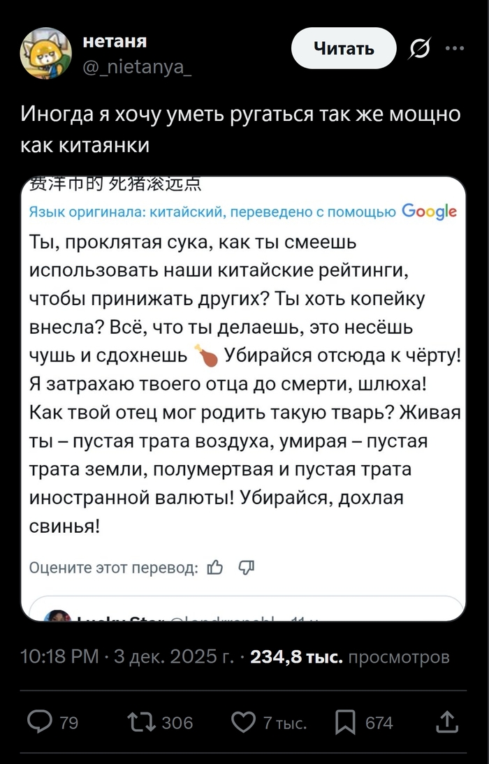 23 Skyscrew Twitter Ещё этот супер злобный эмодзи куриной ножки 3 дня назад Показать полностью 2 Скриншот X (Twitter) Ругательства Китайский язык Перевод Срач 1 1 Ещё 0