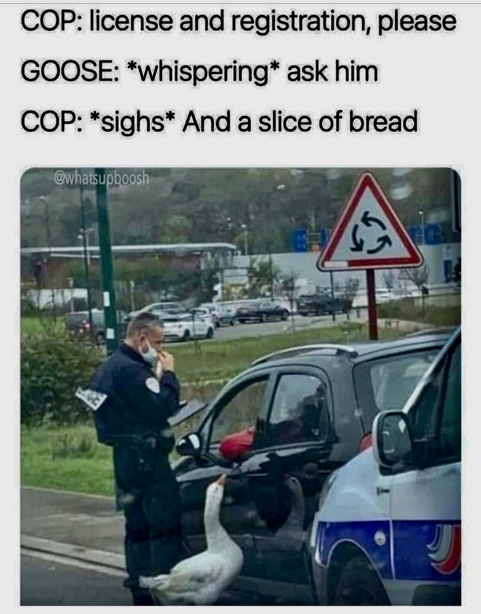 716 Wildwildworld Twitter Угостите 1 год назад Полицейский: Водительские права и регистрацию, пожалуйста Гусь: *шепчет* Спроси его Полицейский: *вздыхает* И кусочек хлеба Показать полностью 1 Скриншот X (Twitter) Юмор Зашакалено 24 6 2 1 Ещё 0