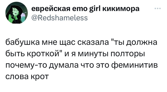 337 VerhovniyMemolog Twitter Кроткой 2 года назад Телеграм - Три мема внутривенно Юмор X (Twitter) Крот Скриншот Феминитивы Бабушка 17 5 Ещё 0