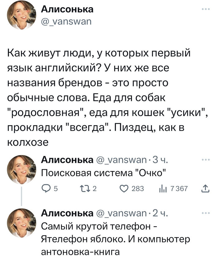 6313 VerhovniyMemolog Twitter Названия брендов1 2 года назад Телеграм - Три мема внутривенно Показать полностью 1 Юмор Скриншот X (Twitter) Бренды Название Английский язык Мат 104 8 5 3 2 Ещё 0