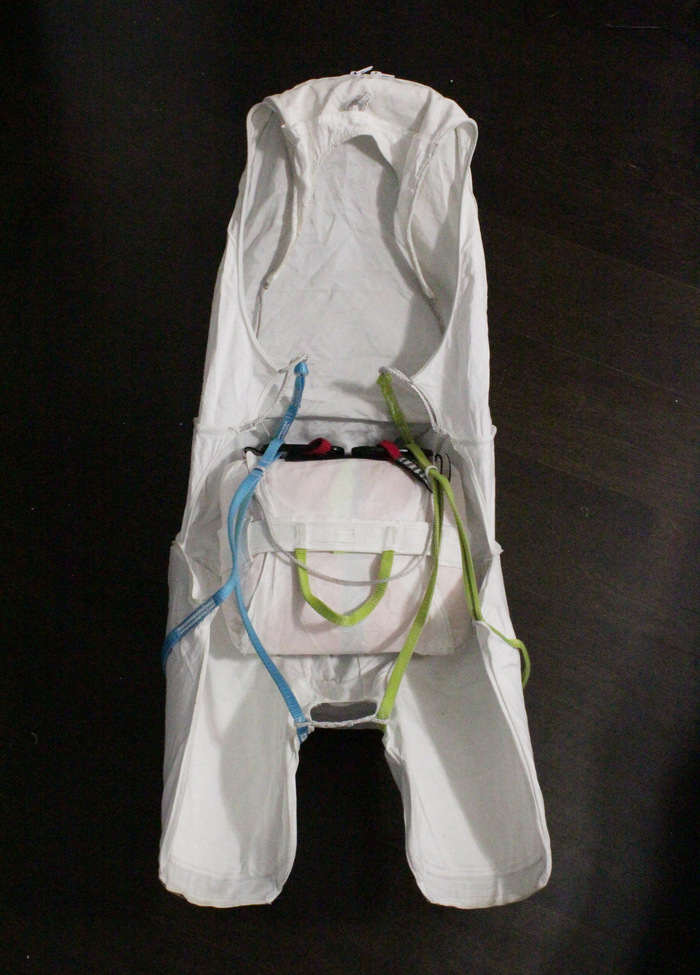 В-третьих, теперь моя экипировка занимает гораздо меньше объема. Приятным бонусом оказалась конструкционная особенность: при перевозке параплан можно поместить между ножных обхватов подвески, тем самым обеспечив крылу дополнительную механическую защиту.
