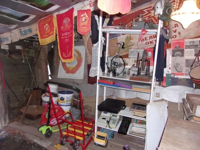 Музей получился спонтанно. Сейчас в нем представлены вещи периода советской власти, которые мне встречались на вылазках. Самый, наверное, старый экспонат - книги за 1949 год. Коллекция "советской пионерии": флаги, вымпелы, барабан, горн, школьная форма, галстуки. Из бытовой техники - телефоны, пылесос, дрель, есть и игрушки, и книги почета, трудовые книжки и плакаты.