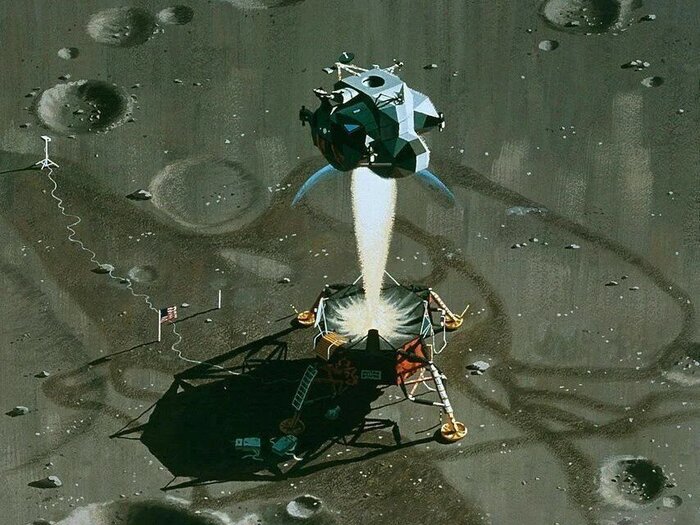 Сила притяжения на Луне в 6 раз слабее силы притяжения на Земле, то есть чтобы взлететь с Луны потребуется в разы меньше топлива, да и ракеты как таковой не нужно, которая необходима при взлете с Земли. Тем более, что радиус Луны в 3,7 раз меньше радиуса Земли. Так что, тут можем быть уверенными: с Луны американцы взлететь могли точно без особых проблем, даже для тех времен это было не сложно. Дополнительно ко всему сказанному скажем, что первая космическая скорость, которая должна быть у корабля на орбите вокруг Луны должна быть в 5 раз меньше, чем на орбите вокруг Земли. Получается так, что вокруг Земли первая космическая скорость должна составлять 8 километров в секунду, а на орбите Луны - 1,6 километров в секунду. Соответственно, как вы понимаете, для старта с поверхности Луны нужно меньше топлива и меньше скорости для выхода на орбиту вокруг Луны. Кстати, нужно запомнить один научный факт, что даже если необходимо в 5 раз меньше скорости, то это, ни в коем случае, не говорит о том, что ракета тоже должна быть в 5 раз легче. Нет. Ракета для старта с Луны может иметь вес в сотни раз меньше.