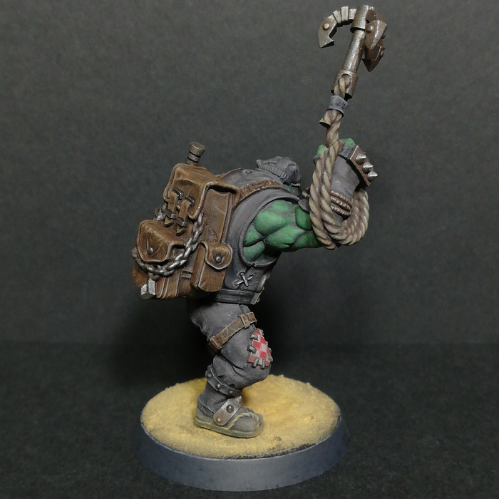 Обнаружил интересный эффект, вдруг кому-то понадобится. Когда только начинал красить терминаторов, трещину с шипом на плече одного из них я воспринял как украшение и, соответственно, фигакнул в золото. Потом, посмотрев на коробку (а кому нужно инструкции читать до того как?), понял свою ошибку и перекрасил в кость с мясом. Так вот эффект красного поверх золота меня прямо заворожил! На шлемах Кровавых Ангелов смотрится просто убойно!