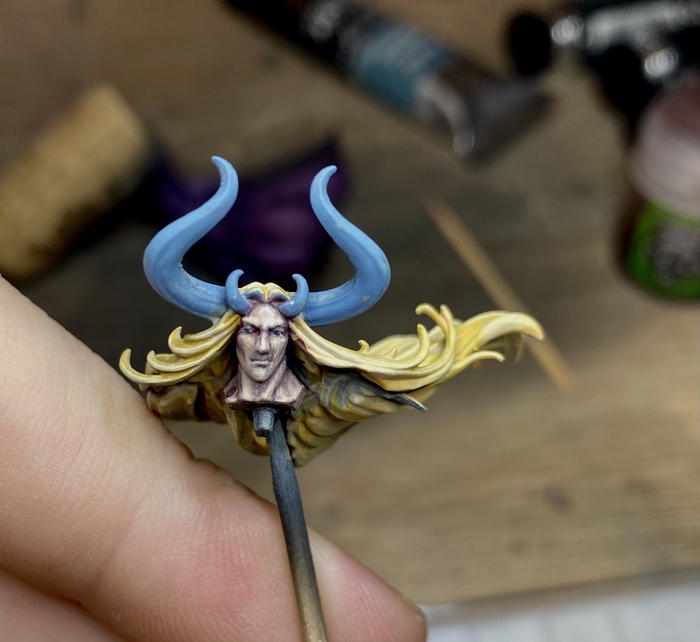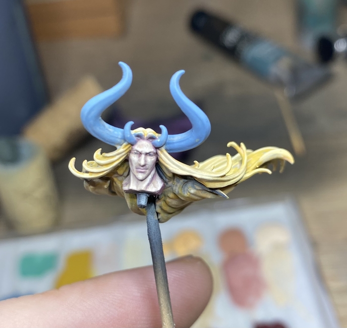 Изначально загрунтовал и сделал зенитальный хайлайт (подсветку) аэрографом.