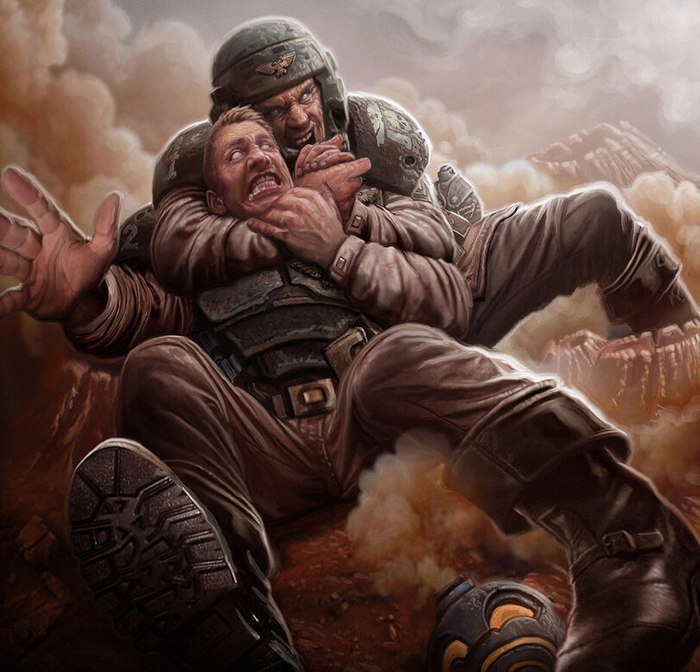 Заказ - кроссовер. Криг-Вейдер с мечем Горнило помогает солдату армии Российской Федерации
