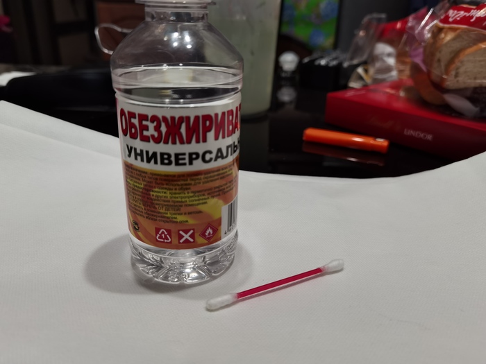 Предварительно, перед началом всех процедур я обезжирил воина при помощи ватной палочки и обычного обезжиривателя: