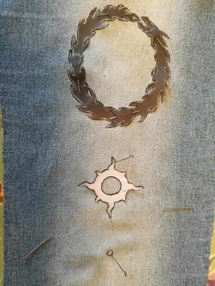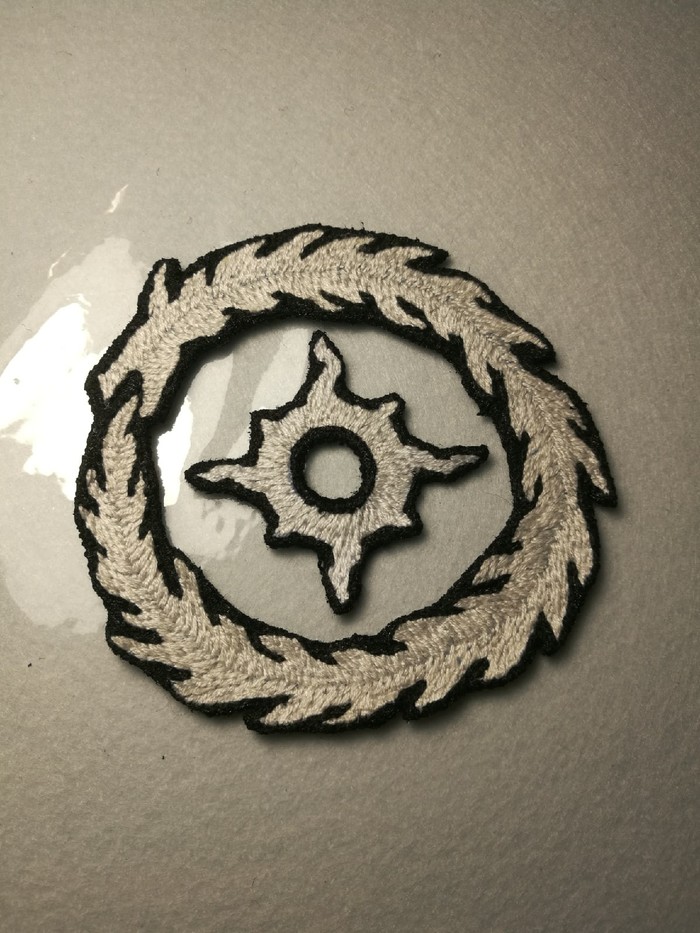 В один прекрасный летний день, мою подругу замучала скука и мне был предложен вариант сделать нашивку любимой группы на толстовке. Долго промучившись с выбором логотипа, в голову пришла идея о эмблеме какого нибудь легиона. Убив добрые пол часа на поиск картинки с нормальным разрешением, было выбрано солнце и змей Тысячи Сынов. (Вышла забавная ситуация, когда сначало был сделан эскиз со змеем внутри солнца, так как я поленился расставить запятые в сообщении)