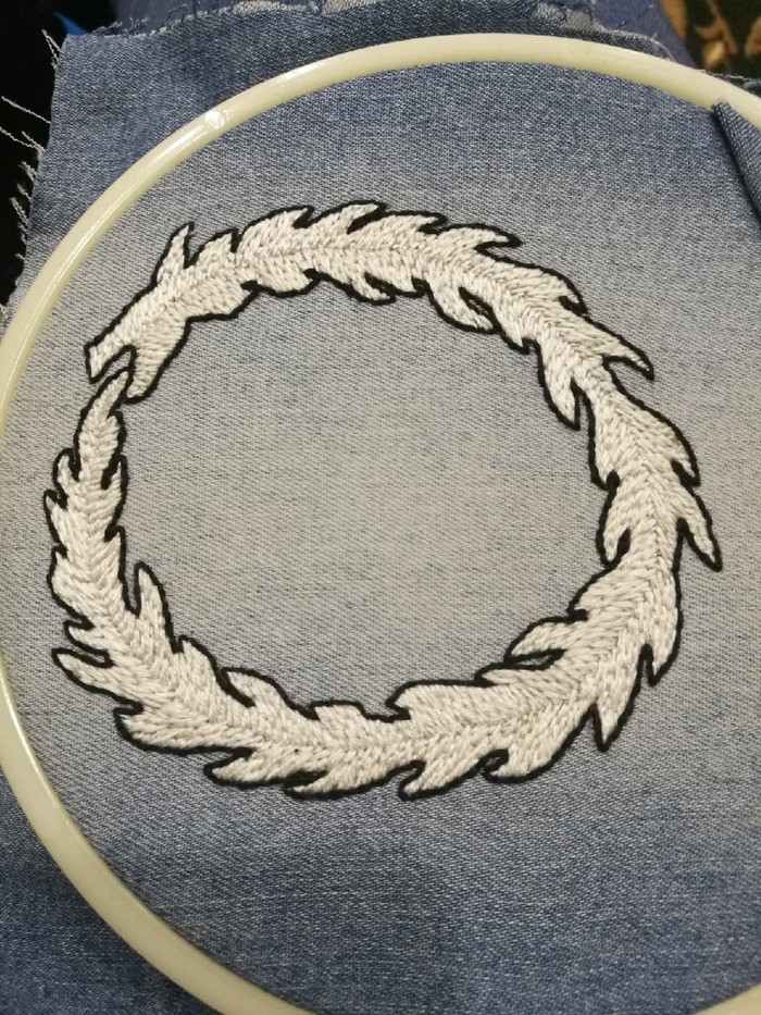 Затем началась вышивка Уробороса, тут к счастью все получилось с первого раза. И на мой взгляд просто великолепно.