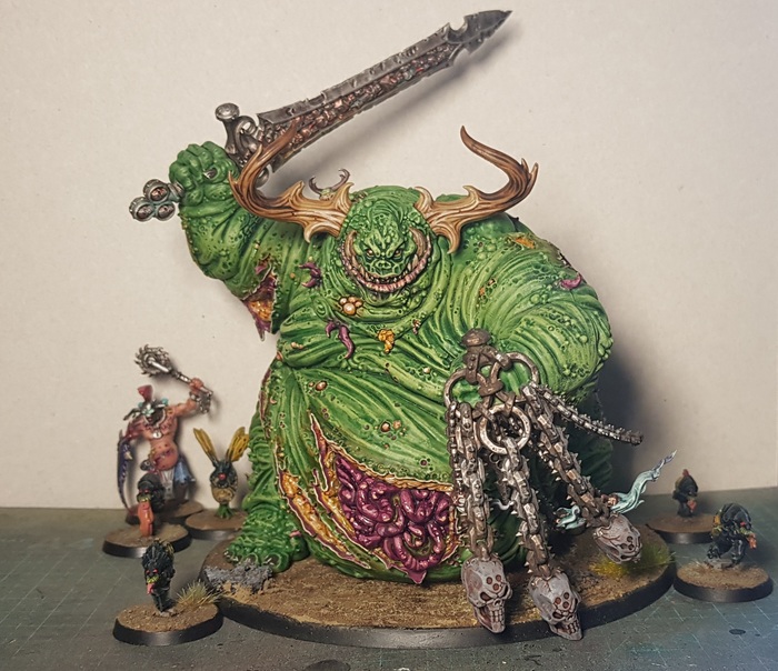 Скоро выходит 9я редакция и я решил разобрать завалы пластика на полках, а возможно даже докрасить нурглитскую часть стартера Dark imperium. На момент разбора завалов выяснилось, что мне осталось покрасить лорда, звонаря и 8 поксволкеров.