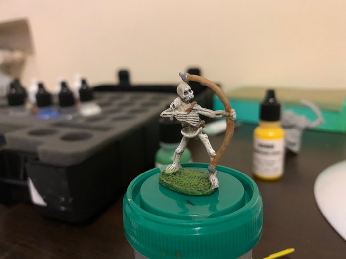 Решил попробовать поиграть в настолку по вахе, увидел, что фигурки надо красить. Посмотрел несколько видосов, заказал себе тренировочный набор. Потратил около 6 часов на маленького скелетика. Получилось лучше, чем ожидал, но намного хуже, чем хотелось бы :) Может тут кто-то сможет указать ошибки и дать какие-то советы, буду признателен.
