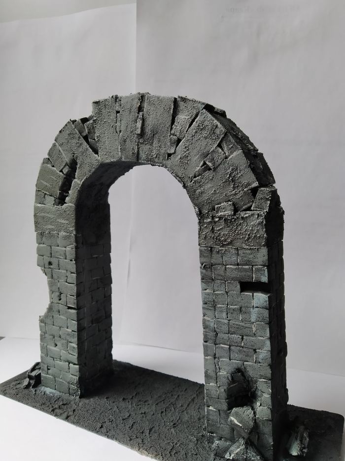 В итоге могу сказать, что материал крайне дешевый, удобен в работе: режется и клеится на ура. Очень рекомендую купить текструную пасту: и для баз минек пригодится и для террейна. Не считая инструмента, затраты на арку: