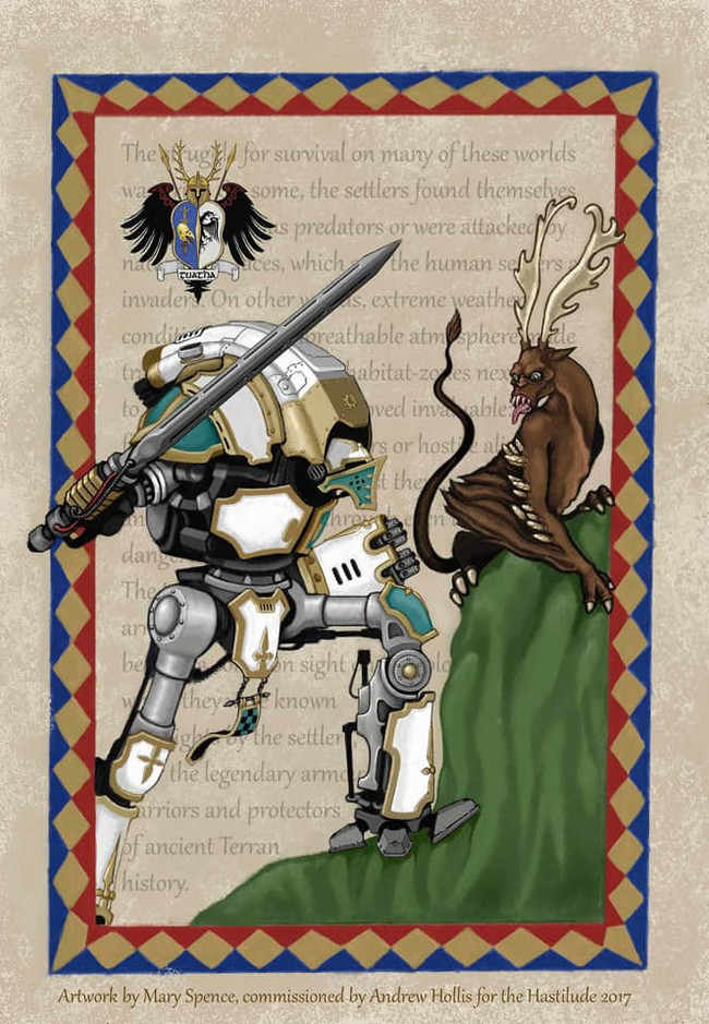 При поиске референсов возникла проблема - автор говорит, что высадка происходит в некоем "landing module", машине достаточно серьезных размеров, которая за раз может перевозить на планету несколько сотен Гвардейцев. Я никак не смог найти какое-то каноничное изображение этого посадочного модуля, поэтому за основу было взято вот это изображение (якобы посадочный модуль для Имперского Рыцаря):