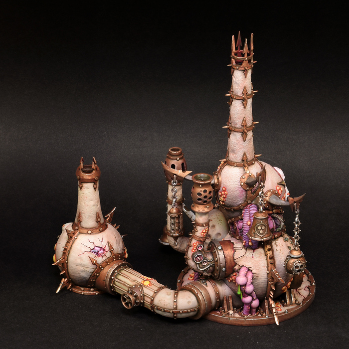 "Увешанные раскачивающимися чумными кадильницами и испорченными колокольчиками, миазматические вредители изрыгают густые облака дыма из своих ржавых дымоходов. Посеянные как споры в целевых мирах, они являются паразитами, которые высасывают нечистоты из земли и цепляются за местную инфраструктуру, загрязняя мир на всех уровнях." ©