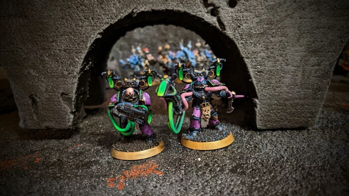 Металлики полностью покрашены драйбрашем и проливками. Быстро и эффективно.