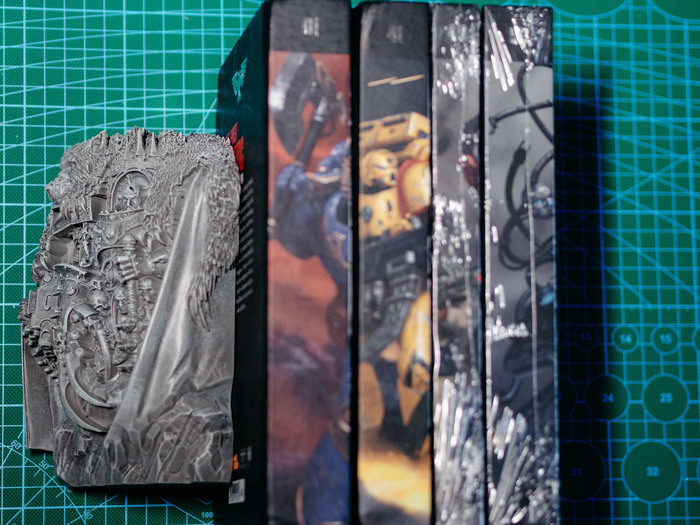 Несколько лет назад издательство The Black Library выпустили лимитированное издание подставок для книг в виде двух экземпляров Воителя Хоруса Луперкаля.