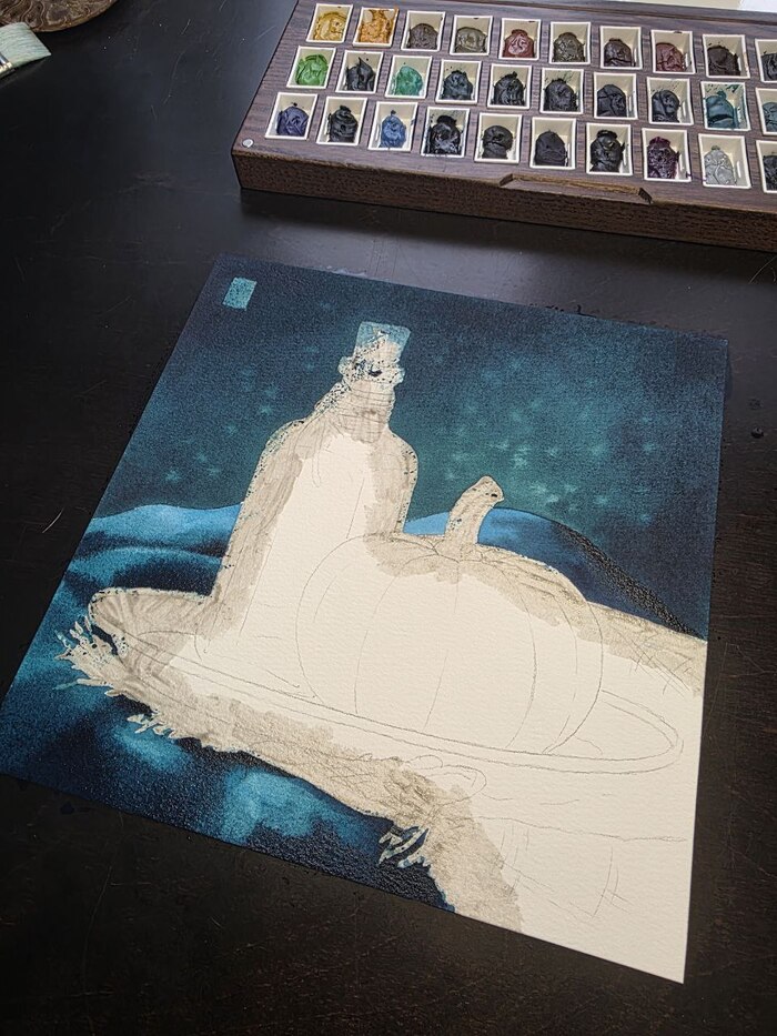 Анимировала свою акварельную иллюстрацию. Если честно Миджорни пока очень плохо справляется с видео - по 20 вариантов приходится генерировать и нейронка вообще не понимает что от неё хотят(. Может научится со временем, т.к. у меня на неё большие планы по созданию мультфильма из акварельных иллюстраций)