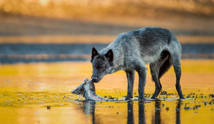 Хищникам пришлось изменить охотничье поведение и научиться правильно употреблять некоторые продукты. Например, мидии — их ведь нужно сначала открыть! Или жирный лосось. Иногда такая рыбка может быть не только калорийной бомбой, но и содержать бонусы в виде паразитов. Чтобы избежать заражения, волки лакомятся самой питательной и безопасной частью — мозгом.