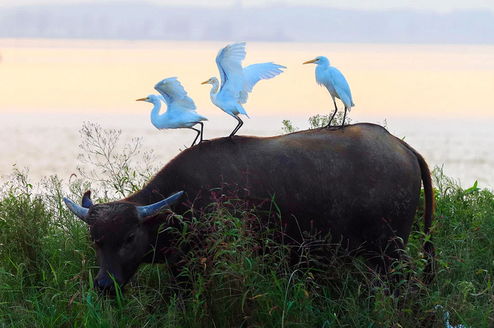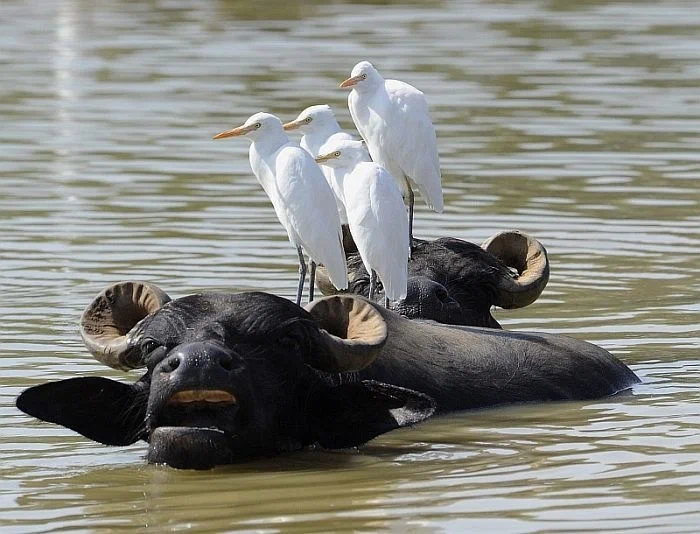 Египетская цапля: Лень — двигатель прогресса. Эти птицы буквально живут на спинах крупных животных, что делает их крайне успешными