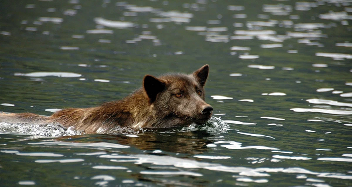 Во-первых, волки научились жить рядом с океаном и покорили его, пусть небольшую, но часть. Они прекрасно переносят высокую влажность, отлично плавают — за раз волк способен проплыть до 13 километров! Так морские пёсики перемещаются от острова к острову вслед за косяками рыб. Ну или просто по своим делам.