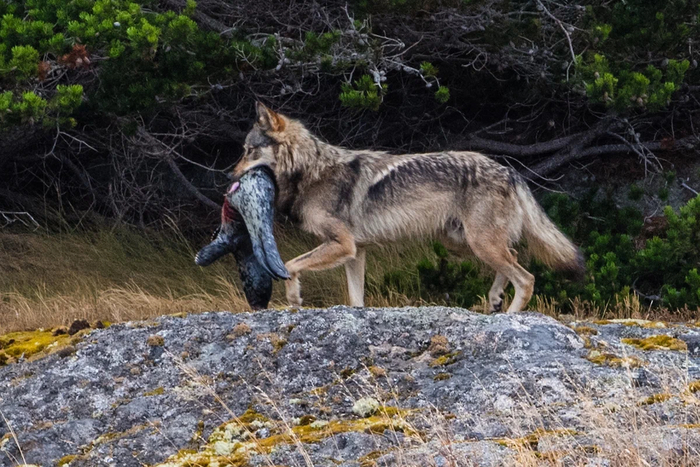 Во-вторых, волкам пришлось значительно пересмотреть свои гастрономические интересы. Обычно серые питаются мясом крупных и не очень позвоночных, по возможности подъедая что придётся. Но тут приходится к столу только морская фауна. У стай, что живут на островах, около 90% меню — морепродукты.