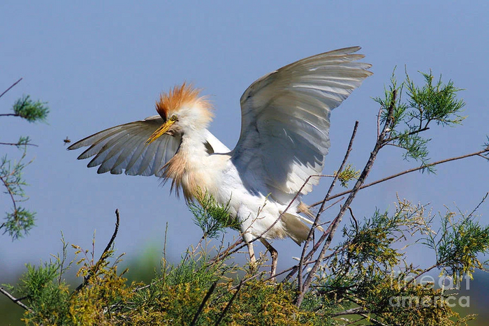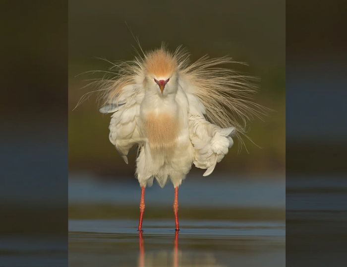 А вот внешний вид зависит от сезона: белые перышки — это повседневный наряд. А вот с началом сезона размножения у цапель отрастают... «волосы». Длинные тонкие перья на голове, шее и спине ярко-оранжевого цвета.