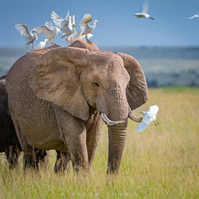 Здесь же можешь и подремать — египетские цапли частенько засыпают прямо на спинах африканских мастодонтов: слонов, носорогов, бегемотов. А четвероногое такси продолжит движение по равнинам. И, возможно, найдёт более быстрый маршрут к густым зарослям травы с насекомыми.