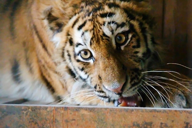 Молодую тигрицу Тесс доставили в Москву из Приамурья. У животного была серьёзные проблемы с пастью: оголенная кость, произошел некроз губы, и неправильно выросли зубы. Специалисты с Дальнего Востока пытались помочь ей, чтобы выпустить в дикую природу, но это оказалось невозможно.