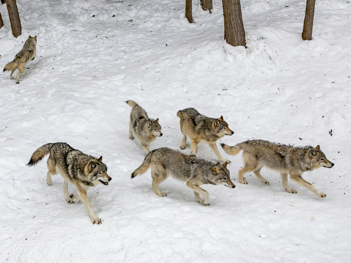 Секрет эффективности кроется в особой технике, известной как «волчий шаг»: во время охоты зверь бежит на кончиках лап, что позволяет ему останавливаться и мгновенно поворачивать. Волк может почти без устали рысачить по лесу десятки километров!