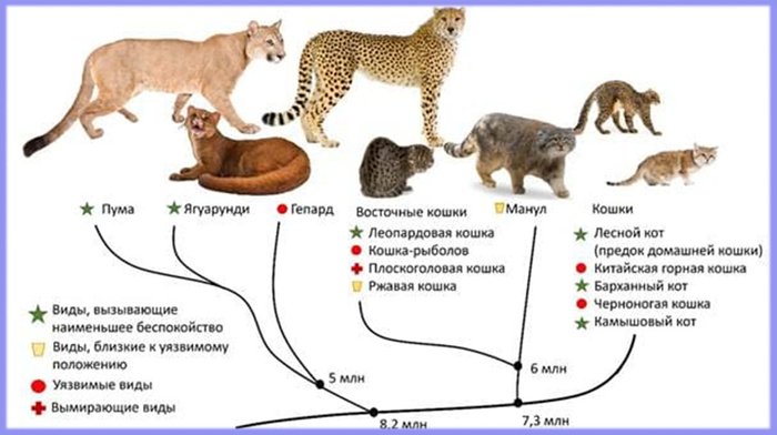 То, что манул внешне похож на домашнюю кошку – результат приспособления его вида к определенным условиям существования. Вообще, несмотря на внешнее сходство, большинство диких кошек уже настолько далеки от домашних кис, что не могут с ними скрещиваться.