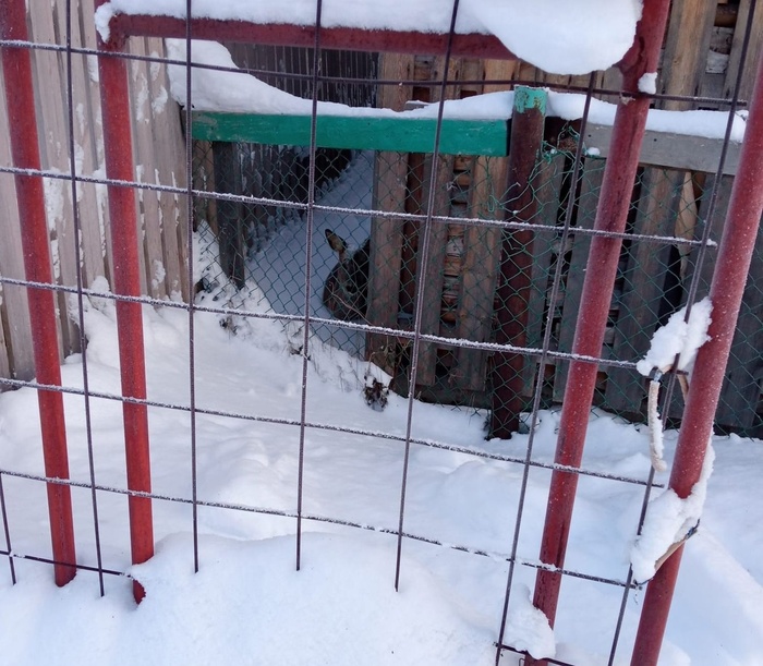 Животное забилось в узкий заснеженный проход, по всей видимости, после преследования собак.