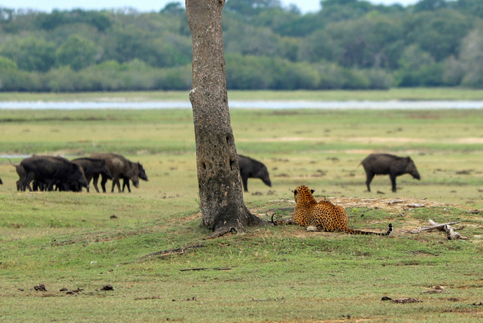 Леопард на Шри-Ланке решил полакомиться кабаном